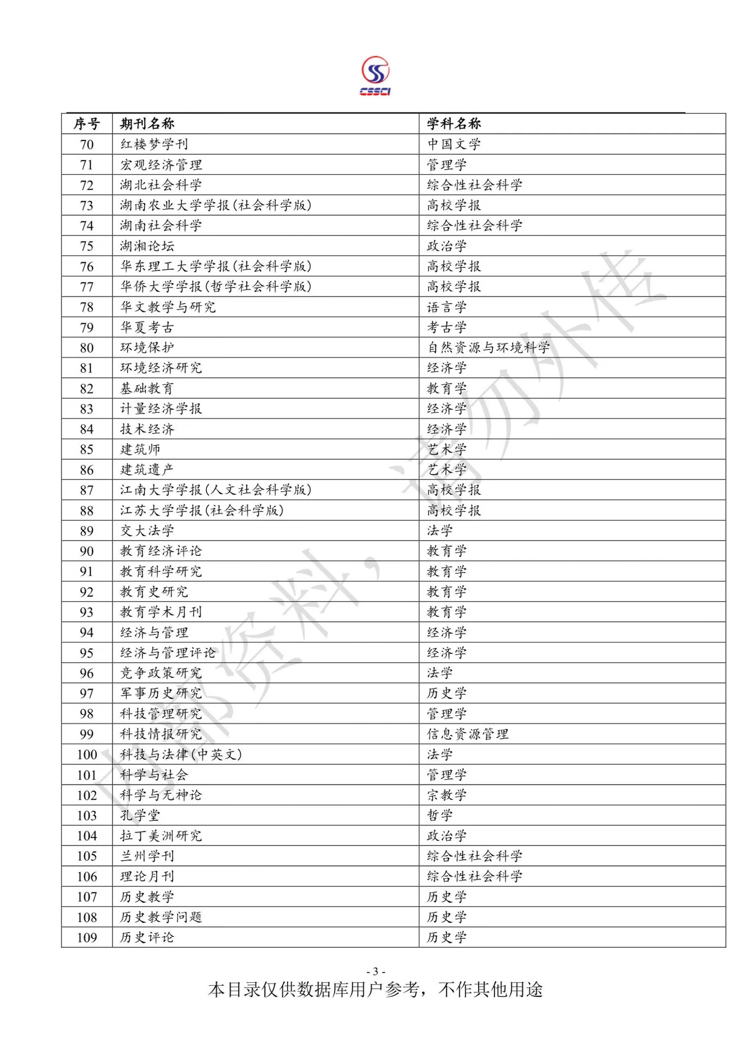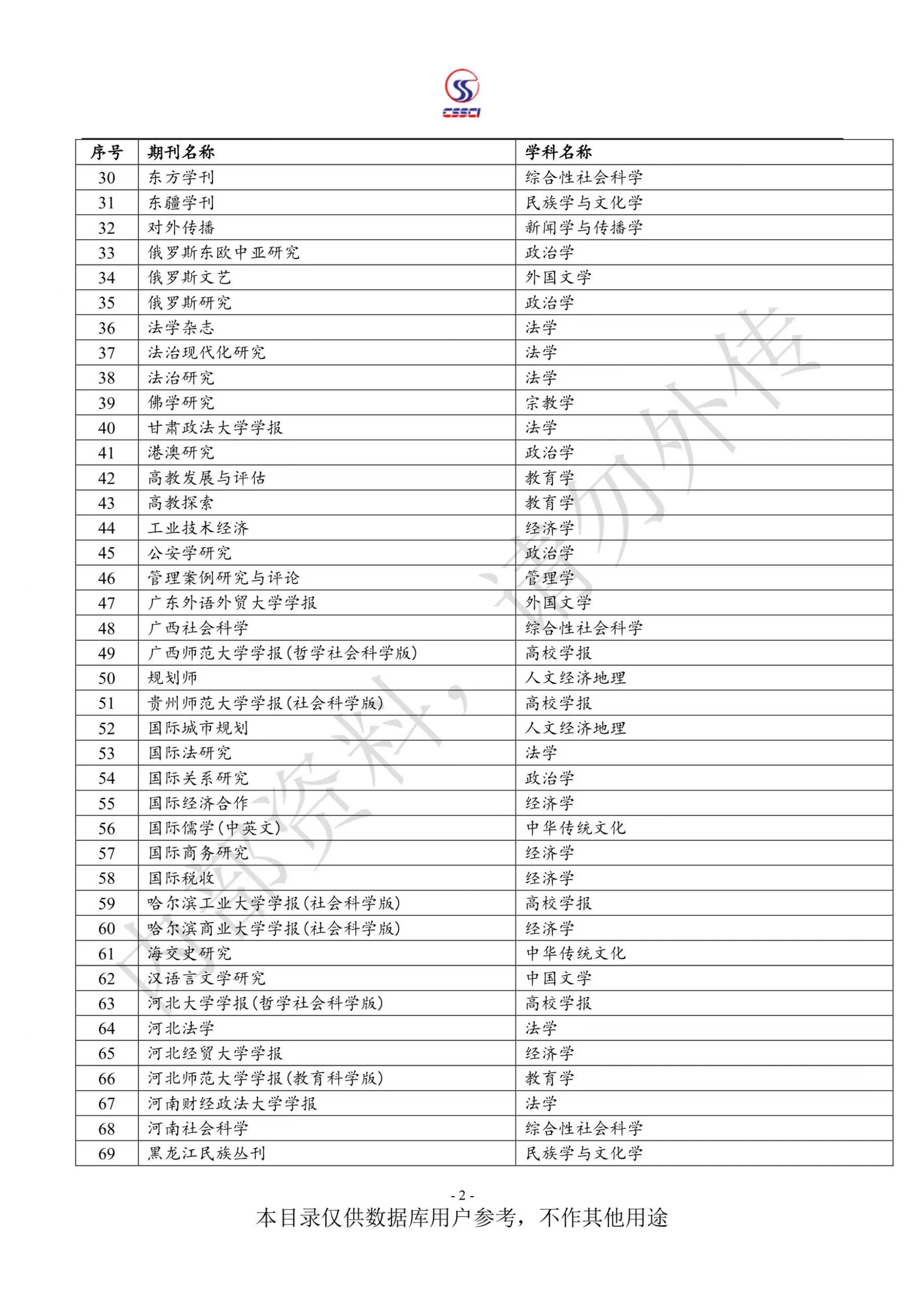 中文社会科学引文索引(CSSCI)来源期刊扩展版目录(2023-2024)