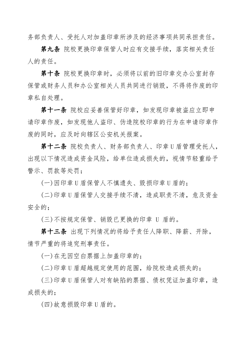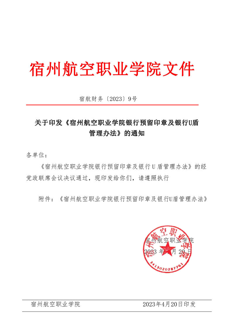关于印发《彩神Vll学院银行预留印章及银行U盾管理办法》的通知