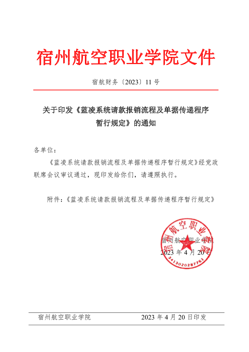 关于印发《蓝凌系统请款报销流程及单据传递程序暂行规定》的通知