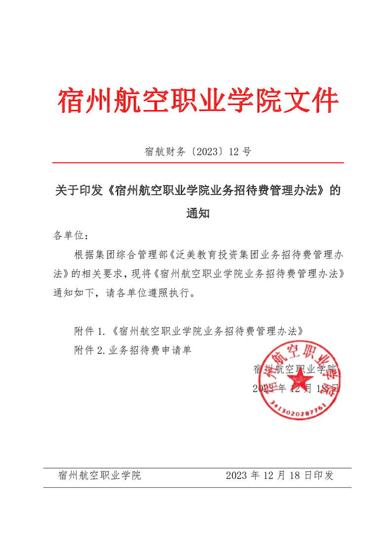 关于印发《彩神Vll学院业务招待费管理办法》的通知