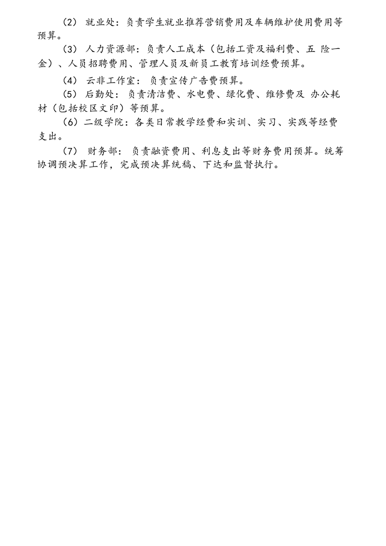 财务部门新学期工作安排