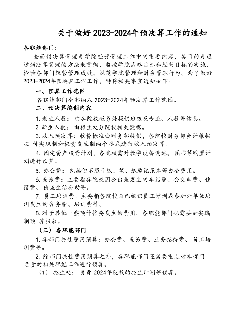 关于做好 2023-2024年预决算工作的通知