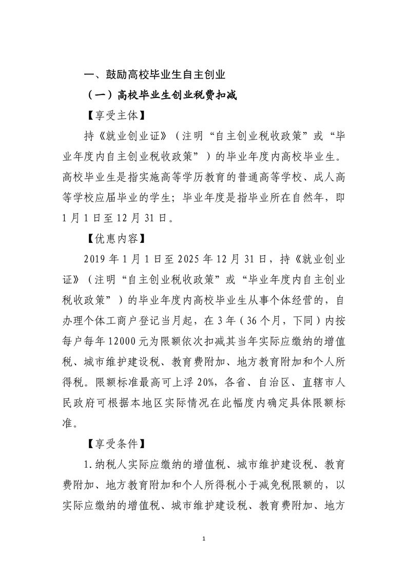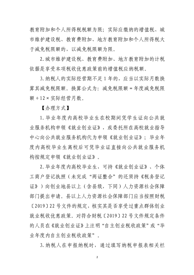 支持高校毕业生等青年就业创业税收优惠政策指引