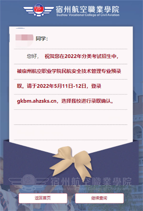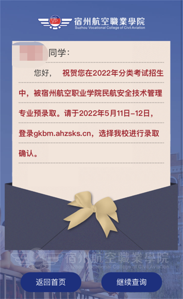 3.点击“立即查询”后,即可查看录取结果,页面如下: