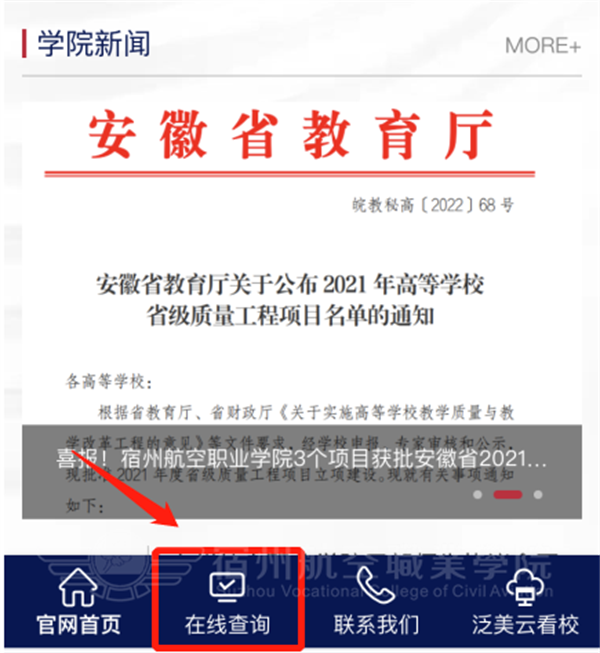 1.登录彩神Vll学院官网(http://www.szhkxy.com/),点击首页最下端“在线查询”进入查询;