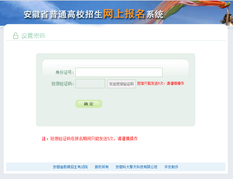 输入身份证号💝,点击“发送短信验证码”按钮后,系统会发送验证码至考生报名时所填的手机号上;填写完短信验证码,点击“确定”🐘,跳转至考生修改密码页面,设置考生登录密码🤨。请勿频繁点击“发送短信验证码”按钮。