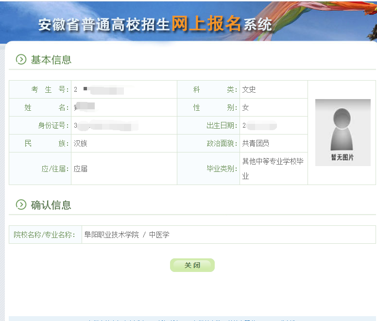 3.退出后重新登录gkbm.ahzsks.cn,可以查询到自己确认的院校: