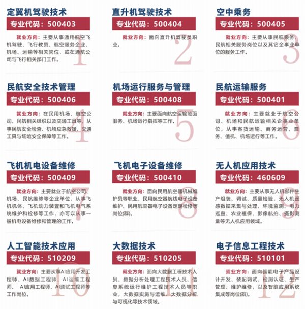 学院采用集团化办学模式,集团拥有中国民航局授予的“民航客舱服务培训”🌀、“民航安全员培训”等资质,与民航机场👨👨👧👦、航空公司、北京中软国际教育科技股份有限公司等建立有合作关系,毕业生将主要就业于飞行🧖♂️、空乘、空保🤦🏿♀️、无人机驾驶💃🏿、飞机维修、安检、航空物流🧑🦼➡️、贵宾服务、值机、AI数据工程师、互联网营销师等岗位🎳。