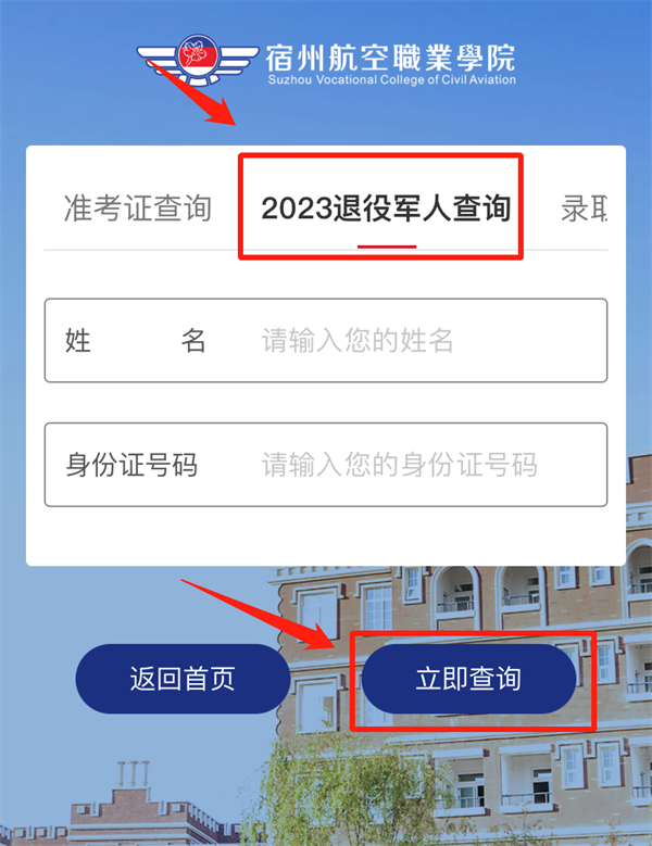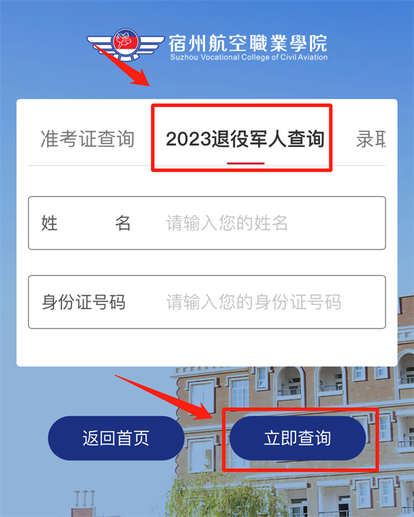 3.点击“2023退役军人查询”;进入页面后根据提示填写考生姓名及身份证号,点击“立即查询”,即可查看资格审核结果;