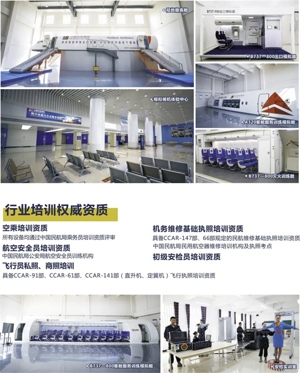 引进行业专家和IATA课程,拥有各类行业培训资质。航空实训中心配置领先的航空实训设备🍦,飞行基地与100余架飞机保障训练,稳定的校外实训实习基地确保专业培训与行业无缝对接。