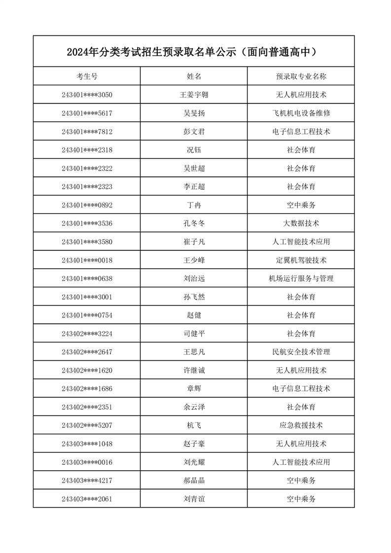 彩神Vll学院2024年分类考试招生预录取名单公示(面向普通高中)