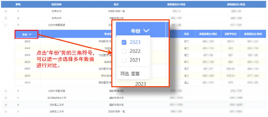 “历年录取数据查询”功能提供的是2021年-2023年分院校🍲、分专业录取结果的统计数据🎳🗜,而考试院网站上公布的是当年投档的最低分和排名情况,两者可能存在差异🛗。