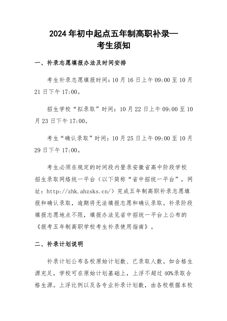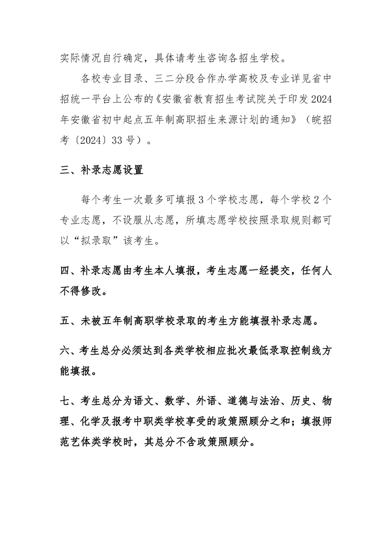 2024年初中起点五年制高职补录—考生须知