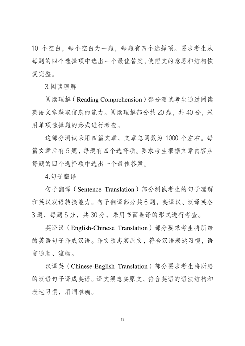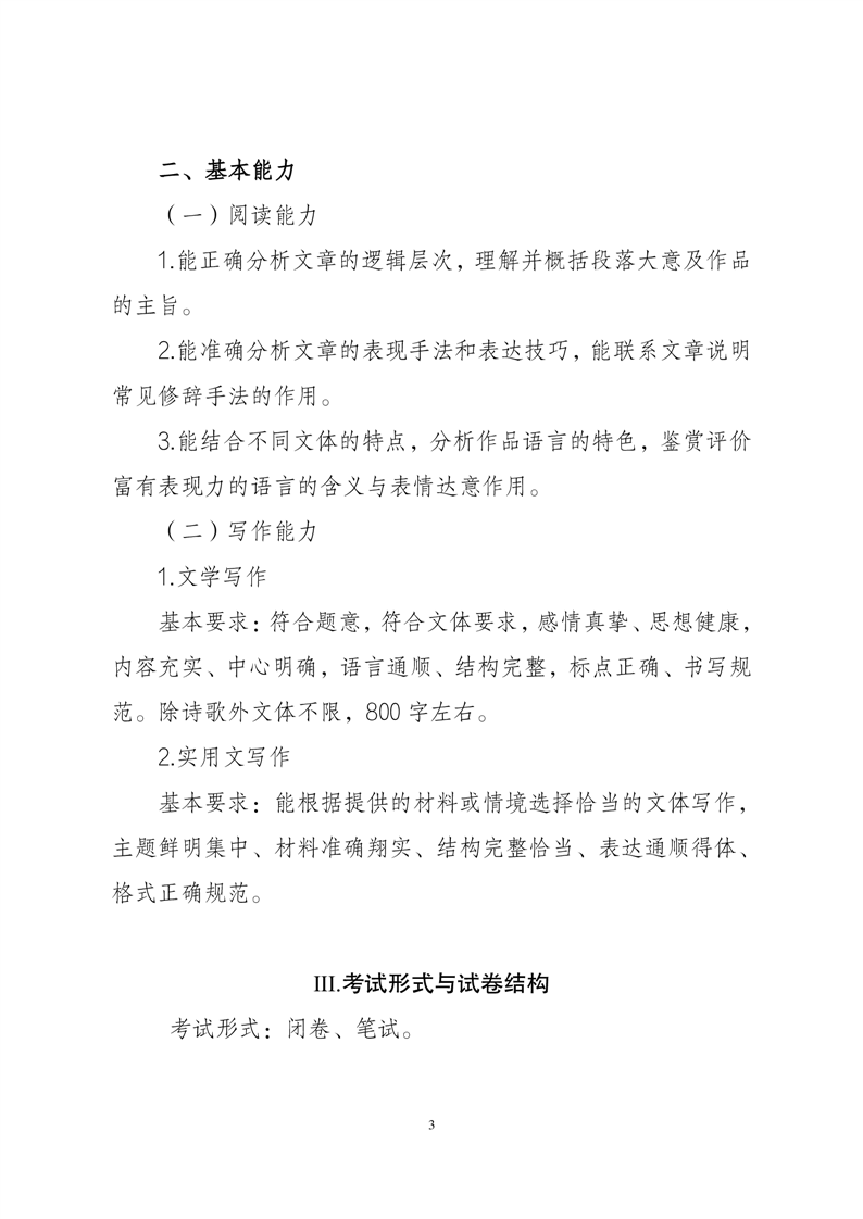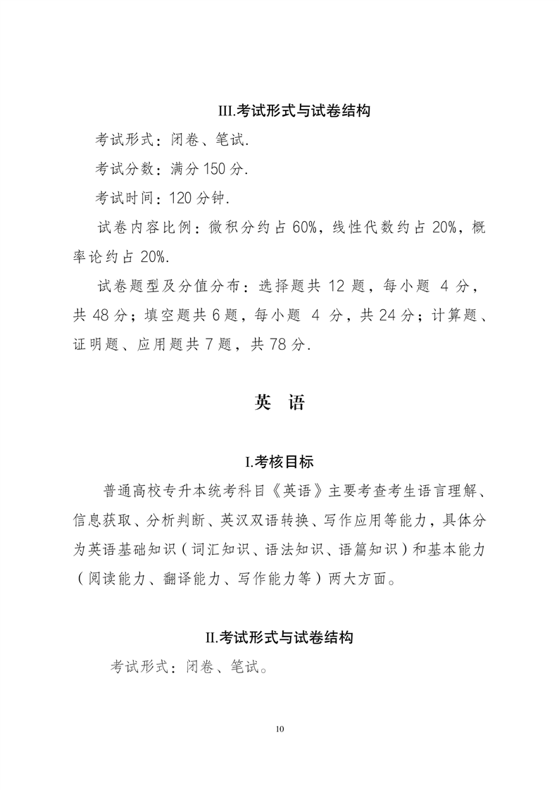 安徽省2024年普通高校专升本公共课考试说明