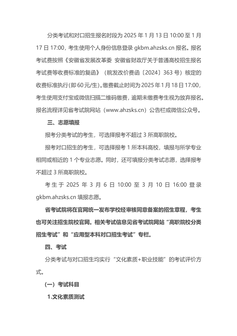 安徽省2025年高等职业院校分类考试招生和应用型本科高校面向中职毕业生对口招生工作启动