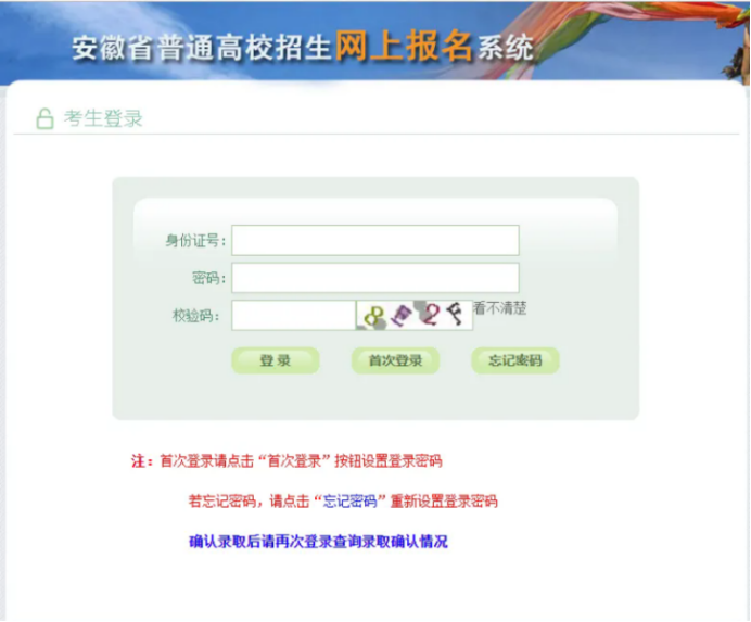 1.使用电脑浏览器登录gkbm.ahzsks.cn。如果是第一次登录系统,请点击“首次登录”按钮🥒,跳转至设置登录密码页面。以下图片仅为示例,以确认网站呈现的内容为准。