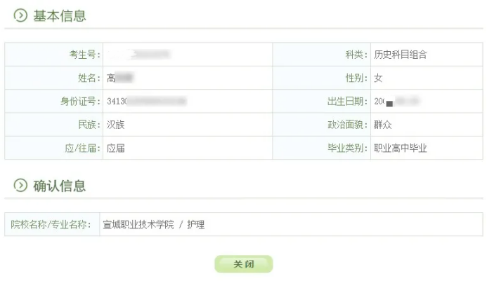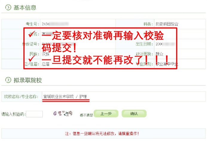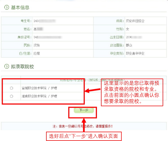 2. 用自己设定的密码重新登录📻🎖,进入录取院校确认界面(示例)👩🎤: