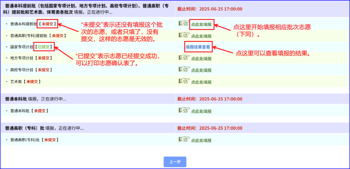 特别注意🍩,根据不同的填报批次🙇🏿、考生的科类、考生可填报的志愿类型🧎‍♂️‍➡️,考生看到的显示内容可能与下面的示例不同:
