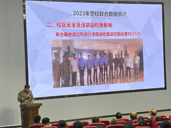 会议开始📇,学院安全管理中心主任马康言就本年度警校联合工作的相关数据进行汇报。