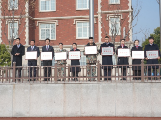 学生处处长谢凡飞先生为23级飞机机电设备维修2班等10个书香班级、读者之星活动中表现优异的集体颁发“书香班级 ”奖牌𓀕。