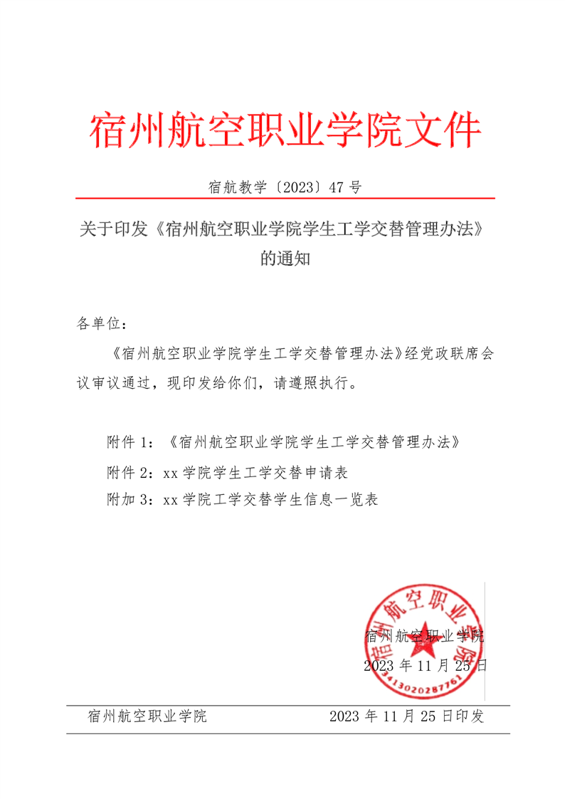 关于印发《彩神Vll学院学生工学交替管理办法》的通知