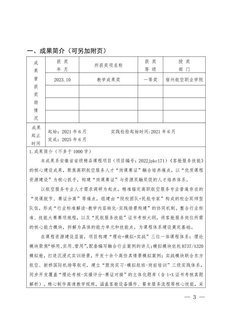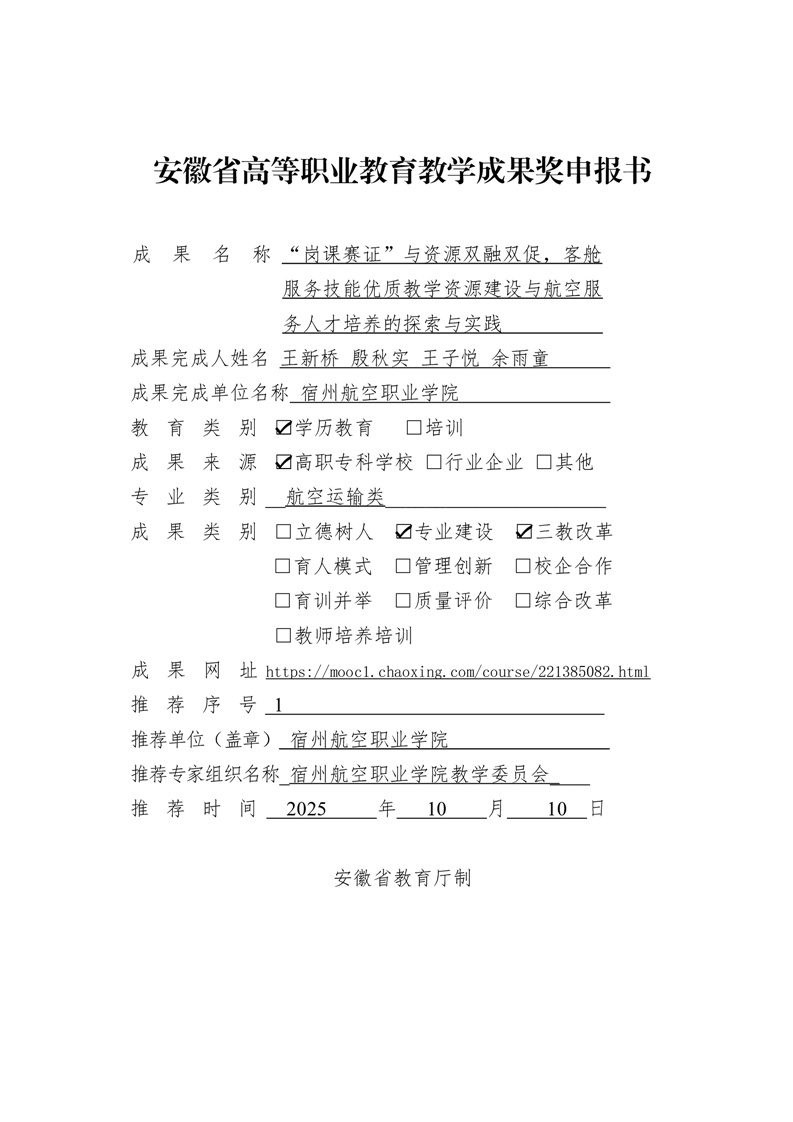 “岗课赛证”与资源双融双促🪫,客舱服务技能优质教学资源建设与航空服务人才培养的探索与实践教学成果申报书