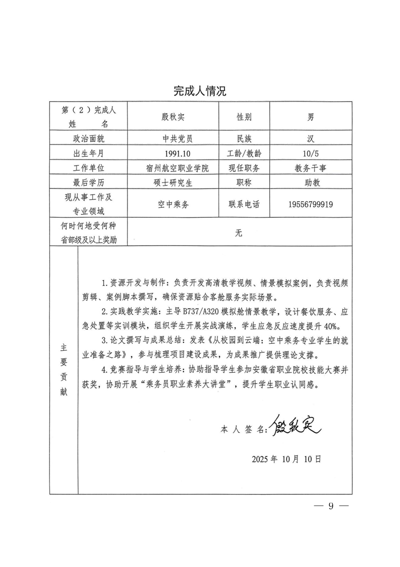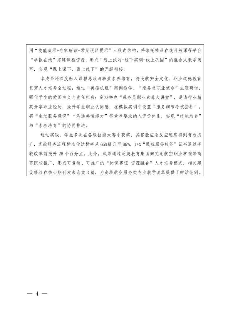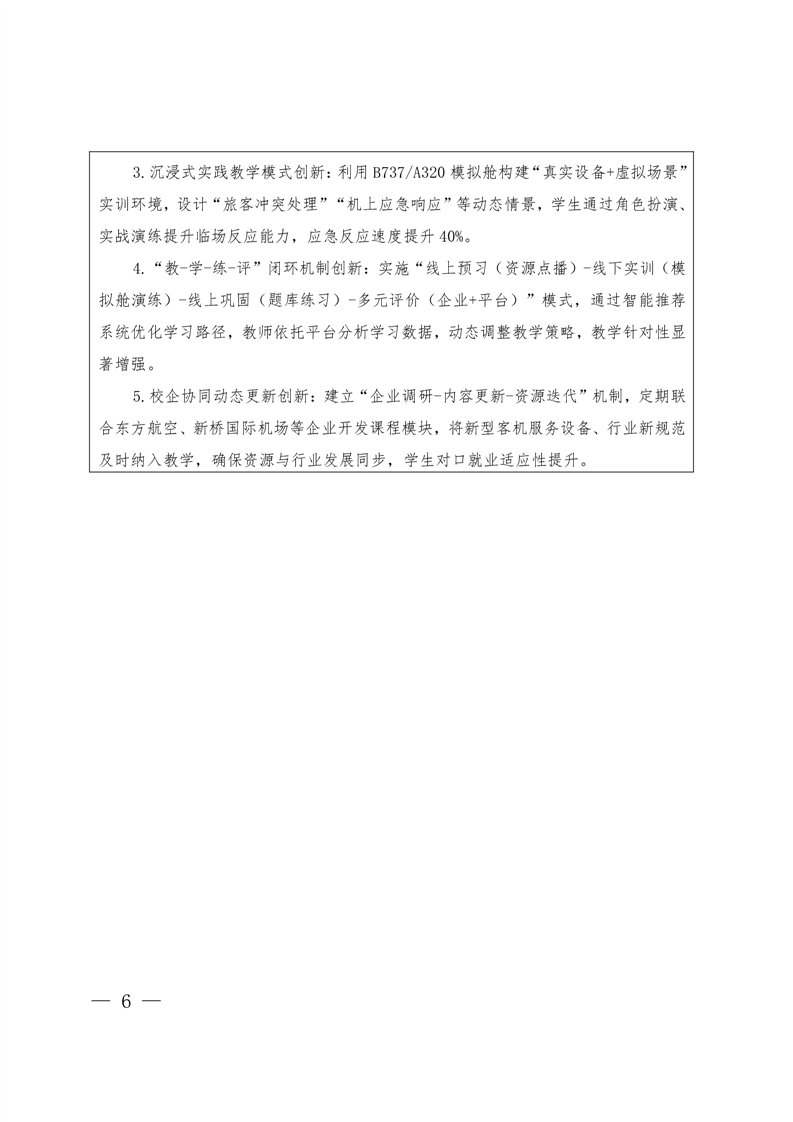 “岗课赛证”与资源双融双促,客舱服务技能优质教学资源建设与航空服务人才培养的探索与实践佐证材料