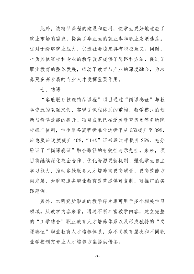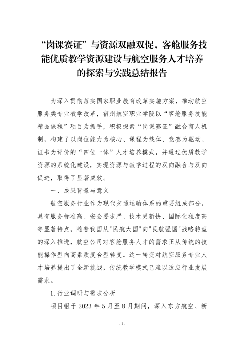 “岗课赛证”与资源双融双促👷🏼♀️,客舱服务技能优质教学资源建设与航空服务人才培养的探索与实践总结报告