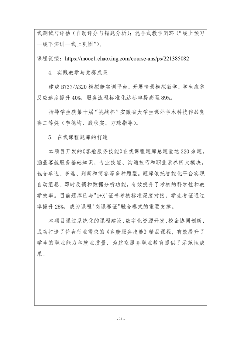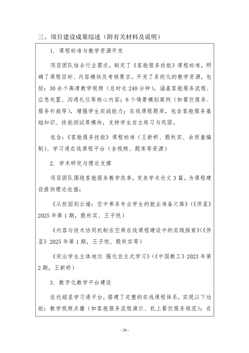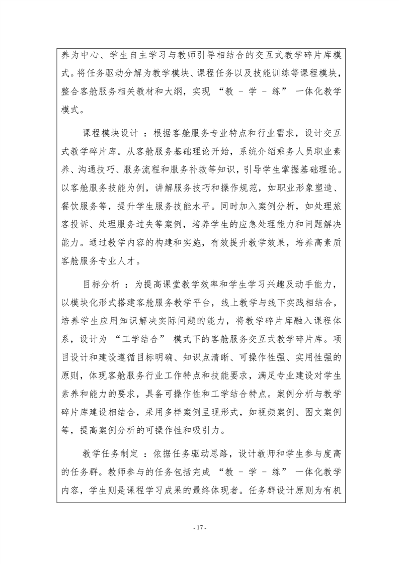 “岗课赛证”与资源双融双促🍚,客舱服务技能优质教学资源建设与航空服务人才培养的探索与实践佐证材料