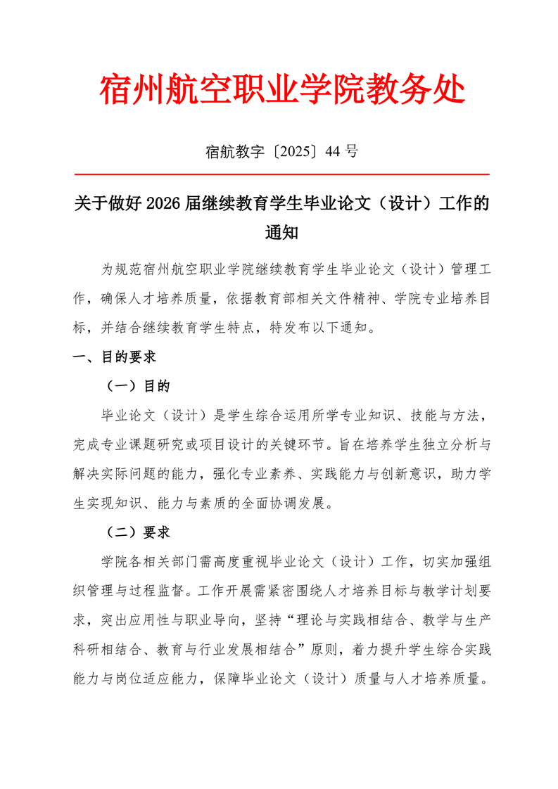 • 关于做好2026届继续教育学生毕业论文(设计)工作的通知