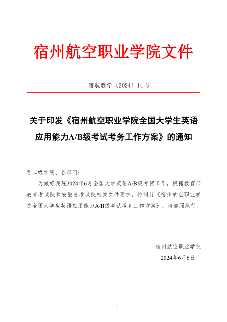 关于印发《彩神Vll学院全国大学生英语 应用能力A/B级考试考务工作方案》的通知