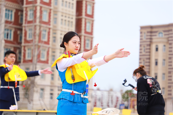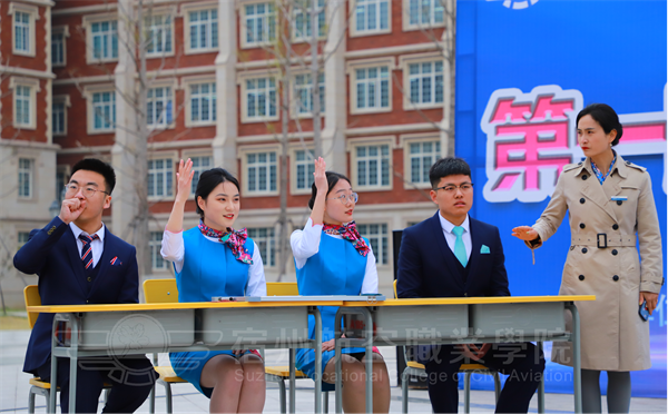 第二项客舱安全演示竞赛,由殷秋实老师和王子悦老师主持。专业的动作𓀕、迷人的微笑给人留下了深刻的印象。其中严雨婷同学和王梦茹同学更是其中翘楚;