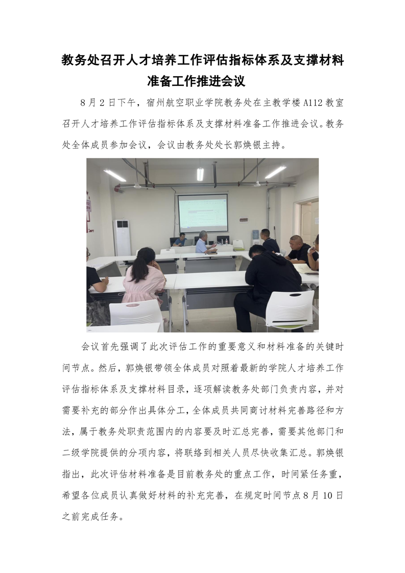 教务处召开人才培养工作评估指标体系及支撑材料准备工作推进会议