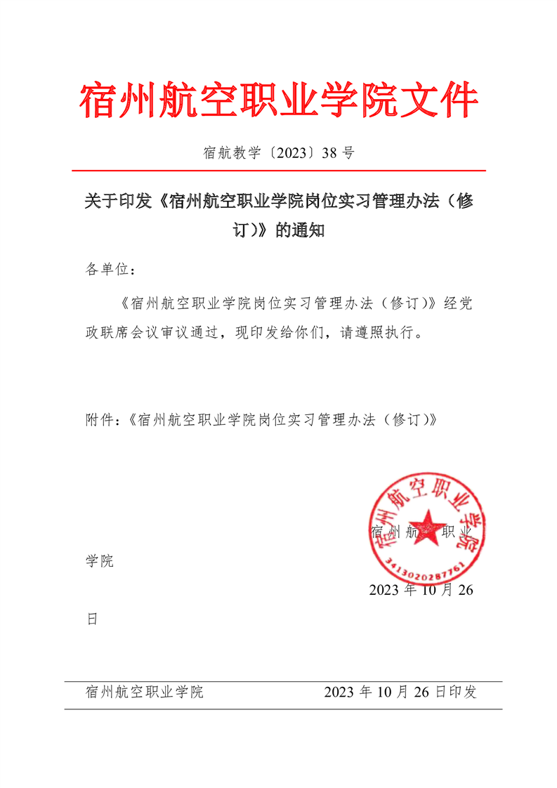 关于印发《彩神Vll学院岗位实习管理办法(修订)》的通知