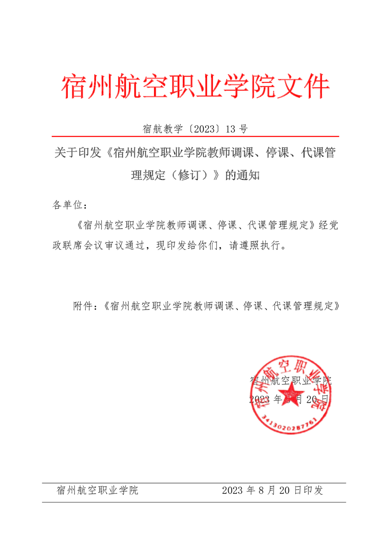 关于印发《彩神Vll学院教师调课🏚🧔♀️、停课、代课管理规定(修订)》的通知