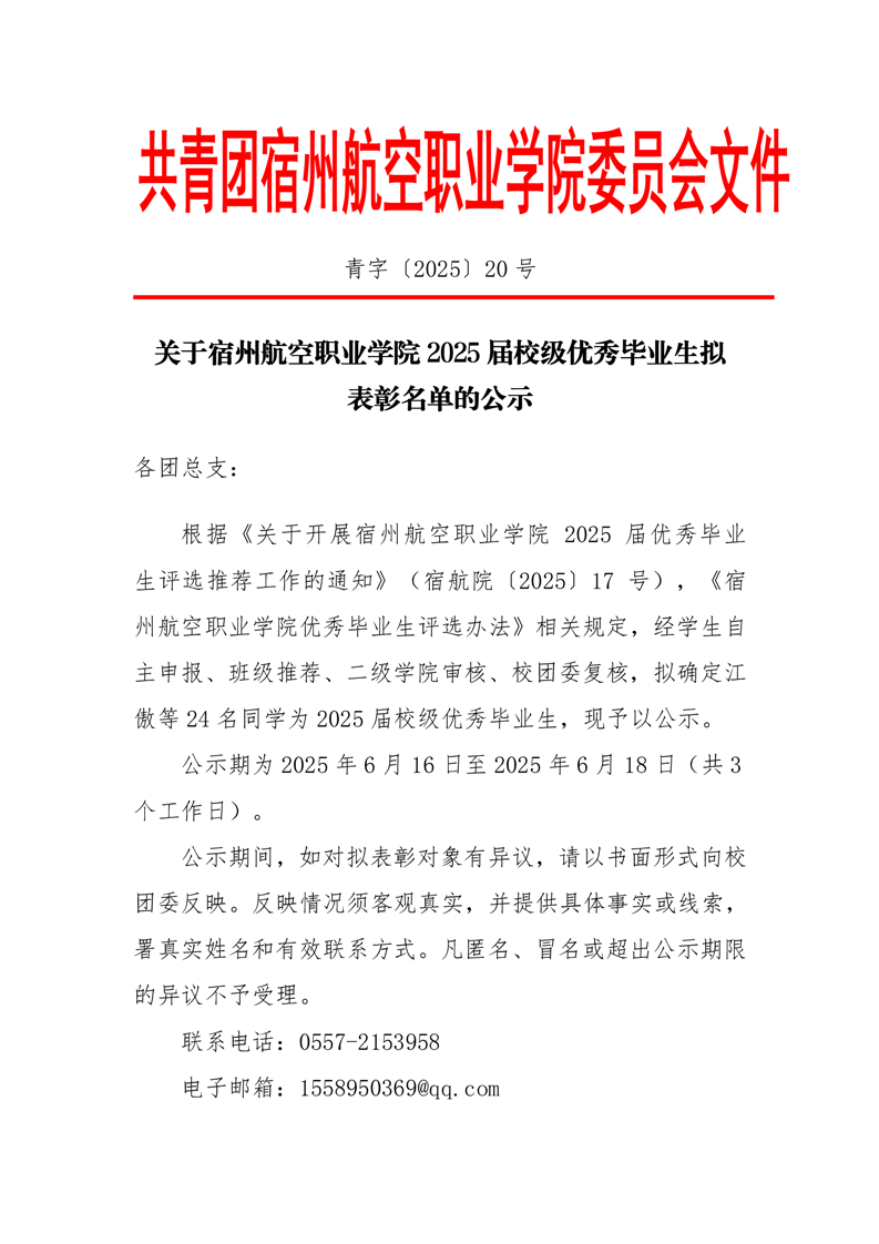 青字〔2025〕20号关于彩神Vll学院2025届校级优秀毕业生拟表彰名单的公示
