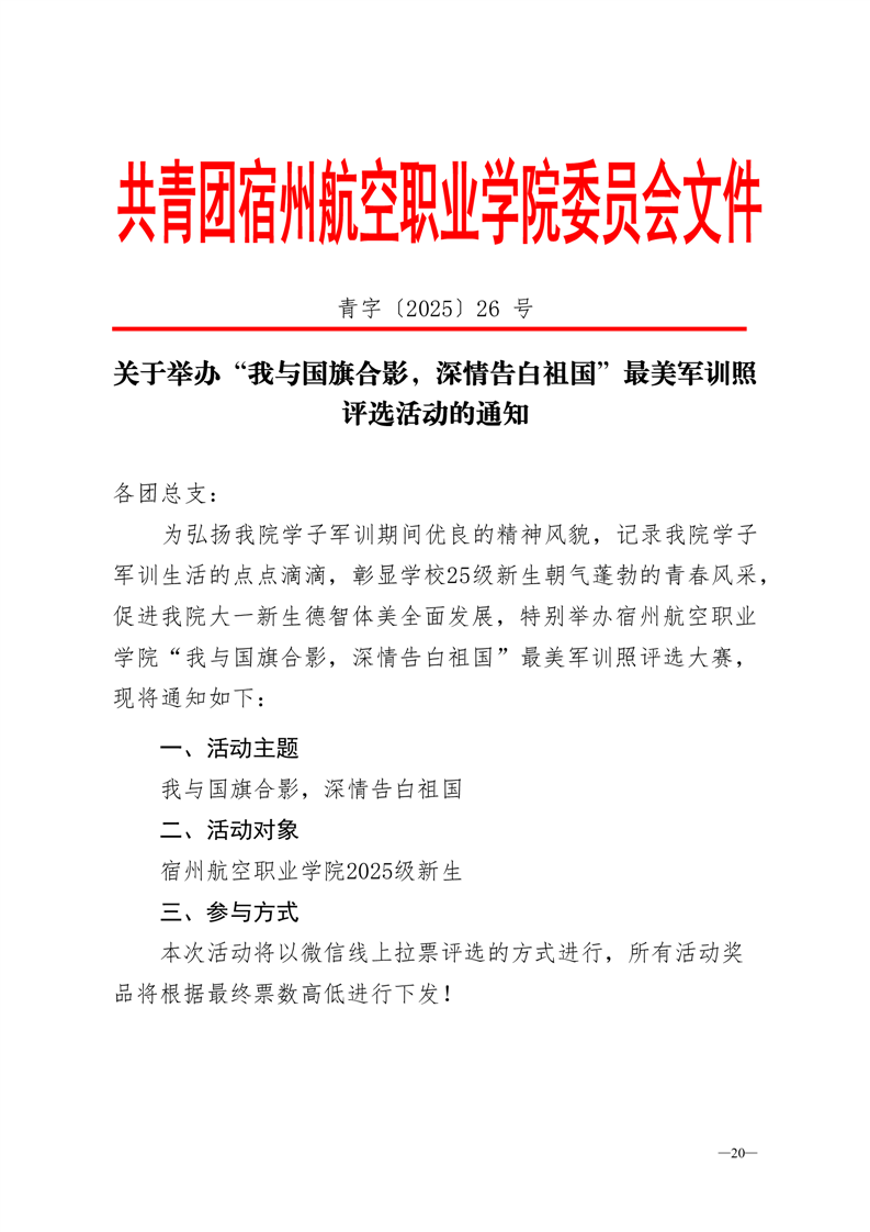 青字〔2025〕26 号关于举办“我与国旗合影🛒,深情告白祖国”最美军训照评选活动的通知