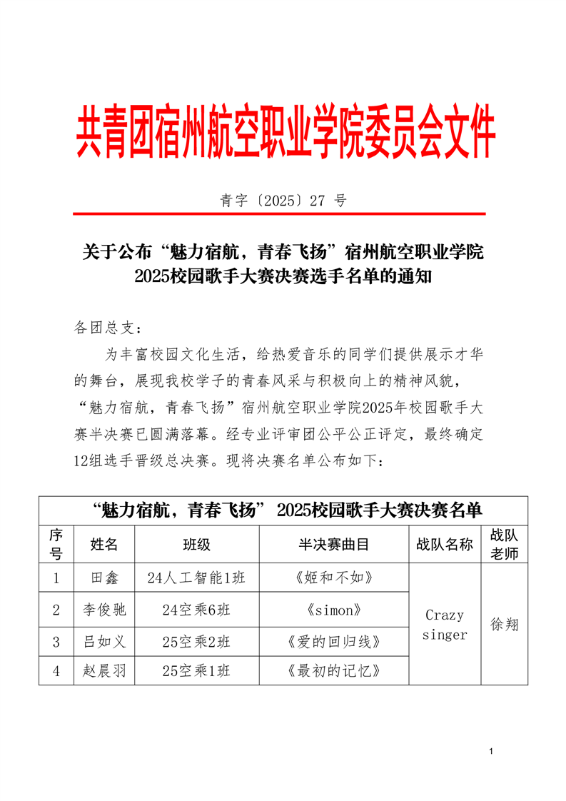 青字〔2025〕27号关于公布“魅力宿航,青春飞扬”彩神Vll学院2025校园歌手大赛决赛选手名单的通知 (1)