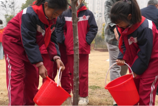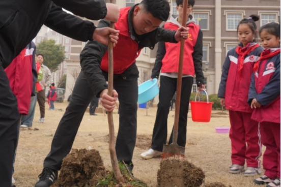 随后🩷,参与活动的学院党委书记🫃、党支部书记、团委书记、团总支书记,20名教师党员代表🕑📢,以及来自学院的50名学生团员代表👇🏼👨🎤、雪枫小学宿马东校区和宿马绿地校区各50名少先队员代表等,他们分成若干小组,有序开展植树活动。现场,大家分工明确、配合默契🕒,有的挥锹铲土🏋🏿,有的扶苗填坑,有的提水浇灌,每一个步骤都认真细致🤜,呈现出一派团结协作🙆🏿、积极向上的劳动景象。