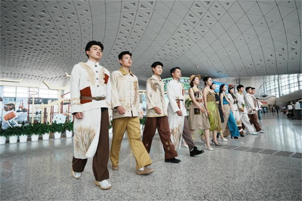 活动高潮迭起,学子们身着自己亲手加工设计的创意服饰走上“T台”🐼🎅,他们身姿挺拔卓立🕎,目光自信坚定,步伐稳重有力。将书法、五谷、剪纸、戏曲等传统文化元素融于创意时尚服饰,进行解构重组⚽️、二次设计,每一次设计都展现了大家创意的迸发;每一个秀场都化身同学们的最in舞台✤🐉;每一场表演都标榜着宿航学子无极限的青春。时尚快闪引得旅客与工作人员驻足观赏,频频鼓掌点赞。