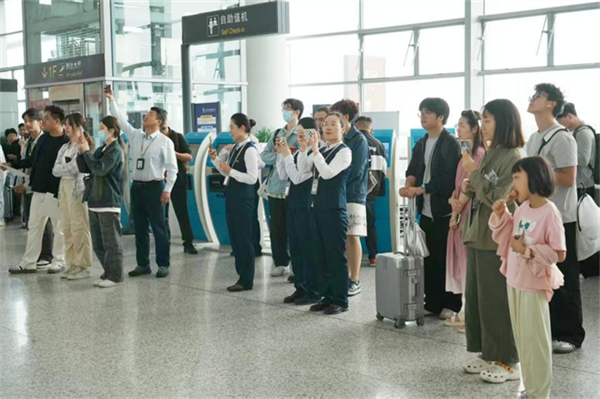 5月5日,徐州观音机场候机大厅和宿州高铁站内,别开生面的“五四礼仪时装秀”快闪活动精彩上演。数十名宿航学子以青春之名,通过职业装礼仪展示与创意时装走秀向五四青年节献礼。随着悠扬的音乐响起,身着航空职业制服的学生们迅速成为全场焦点,以整齐划一的手势舞开启这场快闪表演。笔挺优雅的制服、精准有力的动作😛、默契十足的配合,将航空职业的严谨与温度展现的淋漓尽致。