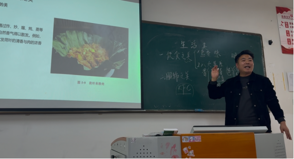 本次备课活动中👨🏼⚕️,李仕尚老师重点展示了第五章"生活美"的授课设计🚘。李老师围绕第五章“生活美”的授课技巧展开经验分享,其幽默风趣的教学风格和互动式课堂设计引发热烈讨论,为课程组提供了可资借鉴的鲜活范例。在讲授"东坡肉"的烹饪艺术时,他巧妙关联宋代文人苏轼的《老饕赋》,以"火候见人生"的比喻揭示火候掌控与处世之道的深层关联;解读《红楼梦》中的茄鲞制作工序时,则以"精工细作现真味"的视角🥒,展现古代贵族饮食对工艺美学的极致追求。
