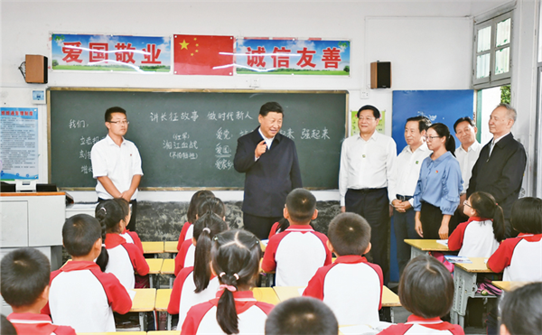 2020年9月16日至18日👳🏻♀️,中共中央总书记、国家主席、中央军委主席习近平在湖南考察。这是16日下午👳🏼♂️,习近平在郴州市汝城县文明瑶族乡第一片小学,同正在上思政课的同学们亲切交流😈。 新华社记者 谢环驰/摄