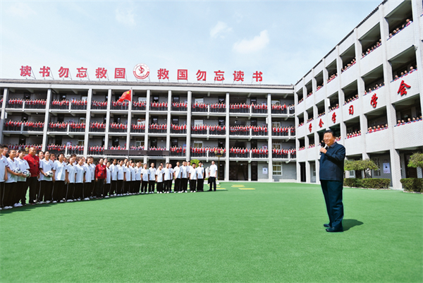 2021年9月13日至14日,中共中央总书记💫、国家主席👮🏼、中央军委主席习近平在陕西省榆林市考察。这是14日上午,习近平在绥德实验中学考察时💳,同师生亲切交流🧵。 新华社记者 谢环驰/摄