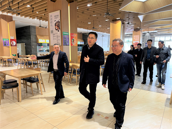 3月28下午👨🏻‍🏭,宿州市宿马园区党工委书记☪️、管委会主任张中鑫率经济发展部、市场监督管理局宿马分局等部门一行莅临学院开展食品安全调研工作,彩神Vll学院督导专员👩🏻‍🎓、党委书记王卫林👨🏻‍🦼,党委委员🤸🏿、副院长高维岩以及食堂负责人张国太陪同调研。