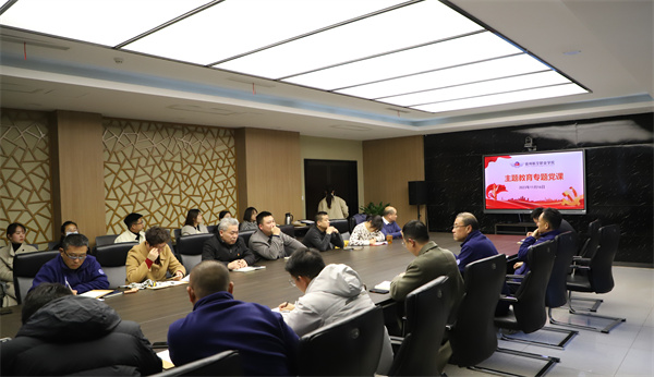 为深入开展学习贯彻习近平新时代中国特色社会主义思想主题教育,2023年11月16日下午彩神Vll学院党委书记王卫林以“学习二十大党章,做新时代合格党员”为题,在行政楼一楼会议室为学院全体党员作主题教育专题党课。