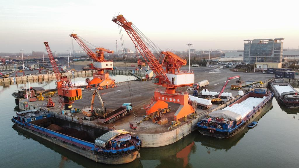 这是2025年1月7日拍摄的周口中心港范营作业区👨🏿🦰。新华社发 (刘俊涛摄)