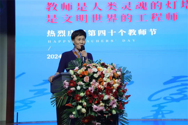 老教师代表王瑞芳教授发表讲话。她表示在教育的道路上,要始终坚持以学生为本,关注每一位学生的成长和发展🧾。要努力营造一个充满爱与尊重的学习环境。作为泛美家人要拥抱科技文明,提升个人素养和格局🥒,不断创新💁🏼♂️,跨越发展,共同实现泛美和我们自己的伟大目标和美好人生👆🏻。