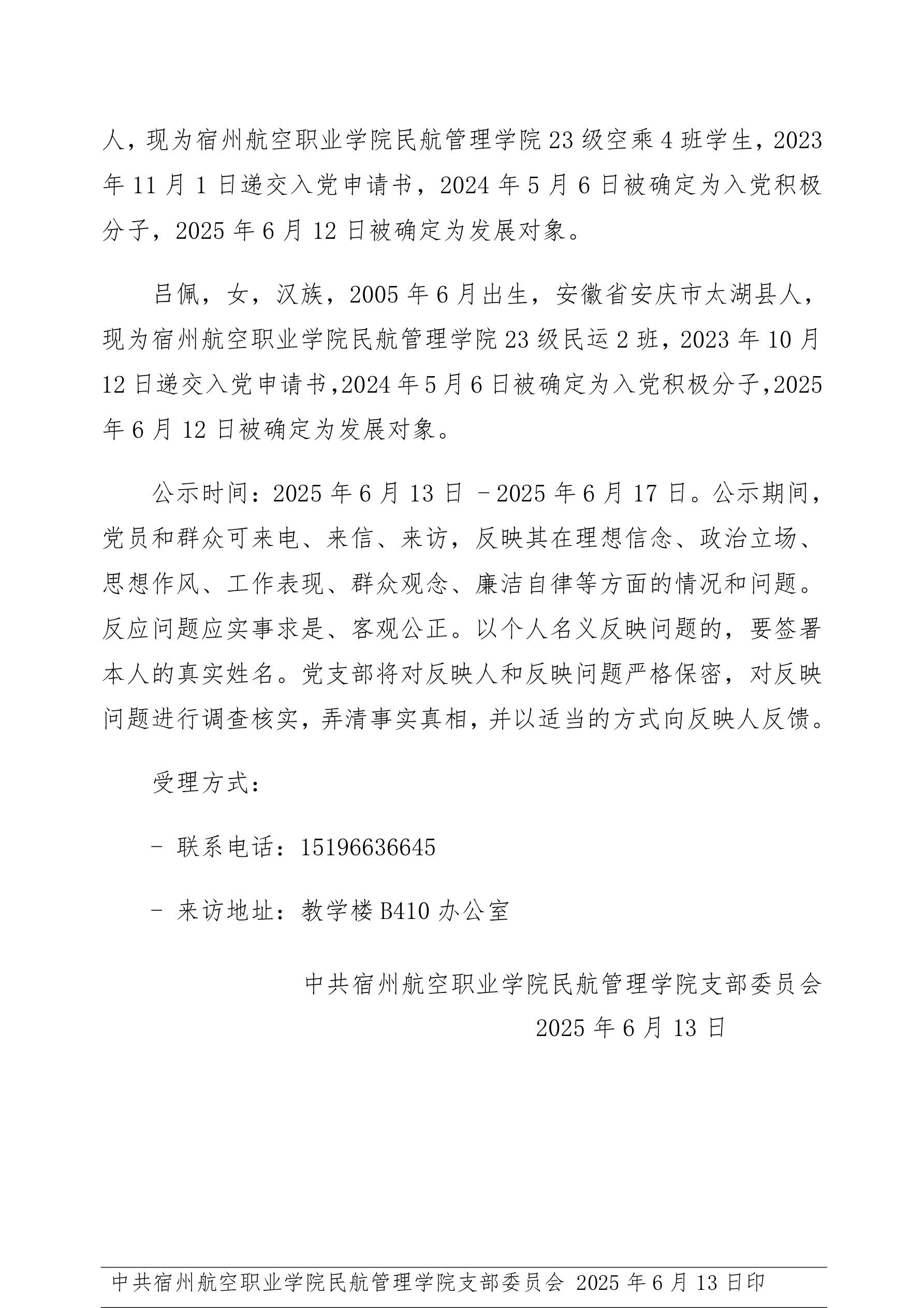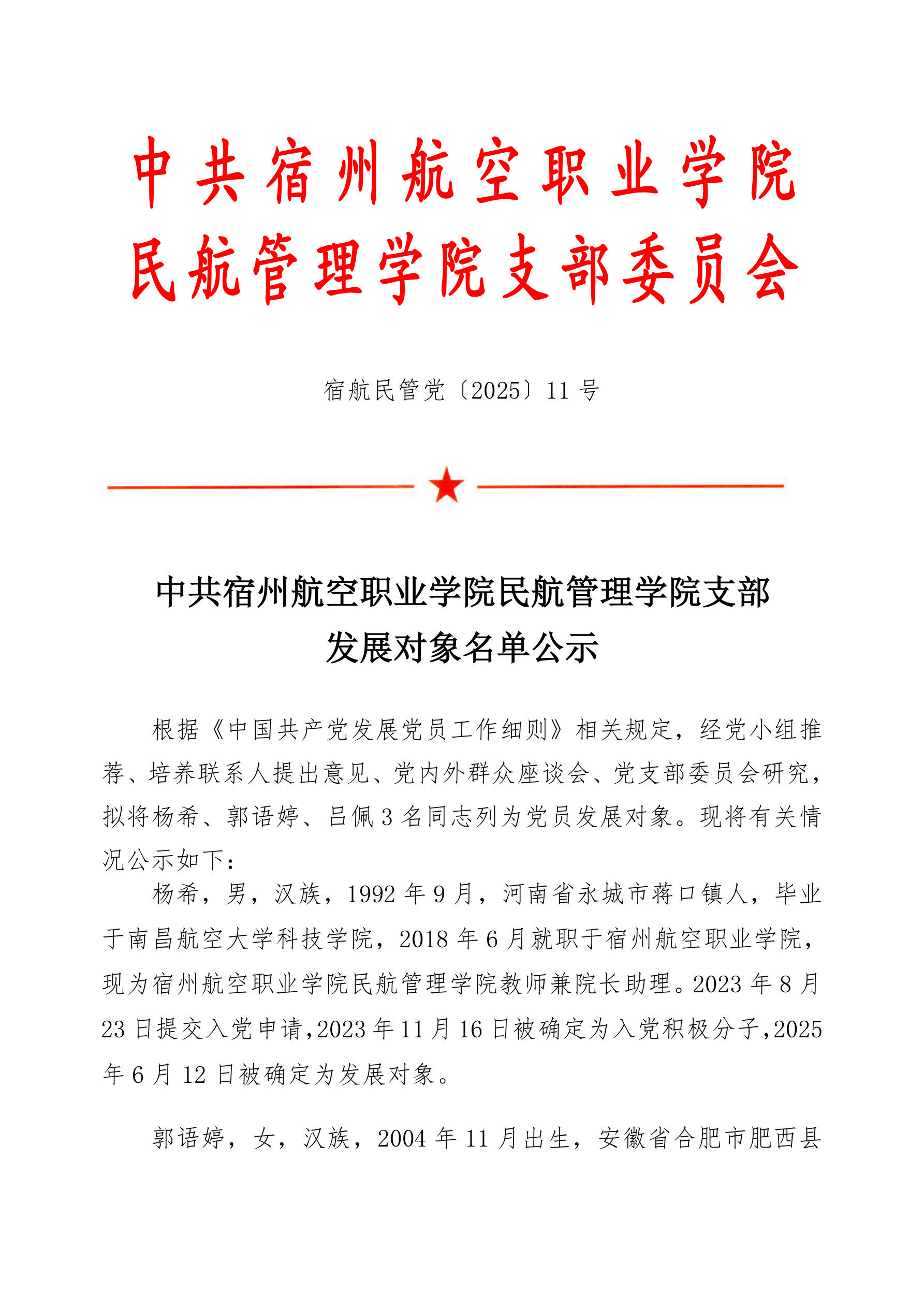 中共彩神Vll学院民航管理学院支部 发展对象名单公示