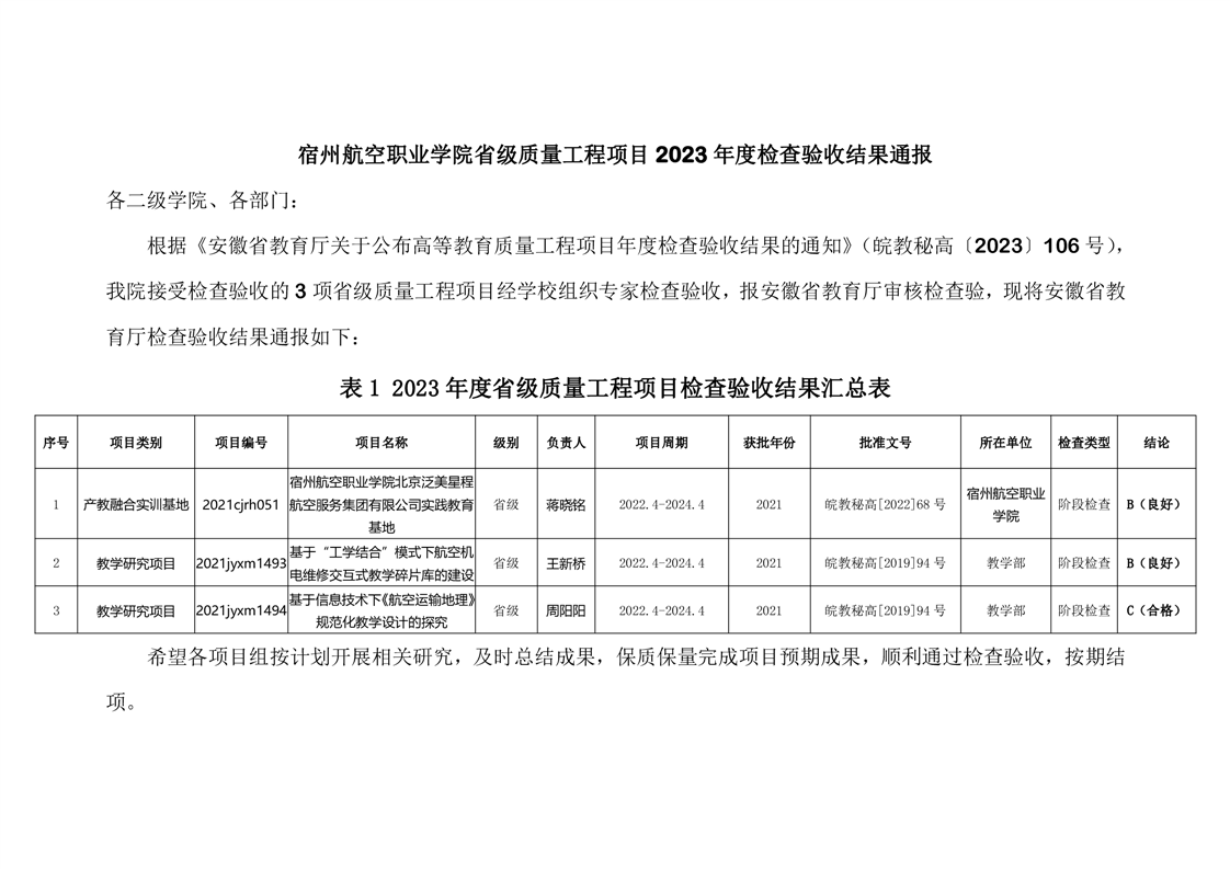 彩神Vll学院省级质量工程项目2023年度检查验收结果通报